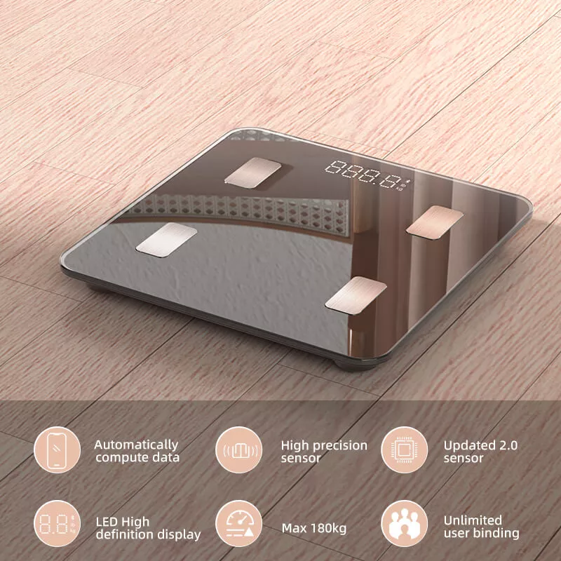 Our electronic digital body weighing scale integrates high-precision 4E+4G sensors and convenient Bluetooth connectivity to provide accurate, instant body metrics.